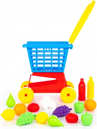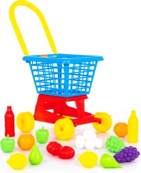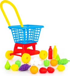 Acest cărucior de cumpărături din plastic este ideal pentru jocurile copiilor și dezvoltarea imaginației. Cu un set bogat de alimente, copiii se vor bucura de ore întregi de distracție creativă.