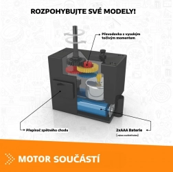 Puneți-vă creațiile în mișcare și setați direcția datorită motorului integrat. Necesită 2× baterii AAA (nu sunt incluse).