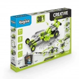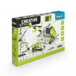 Setul Engino Creative Builder oferă o lume bogată a construcțiilor – de la mașini și macarale la avioane sau mori de vânt. Datorită sistemului inteligent de piese, transformați ușor un model în altul, în timp ce motorul cu cutie de viteze dă viață creațiilor voastre. Aplicația interactivă kidCAD afișează modelele în 3D, astfel încât le puteți roti, mări și construi pas cu pas.