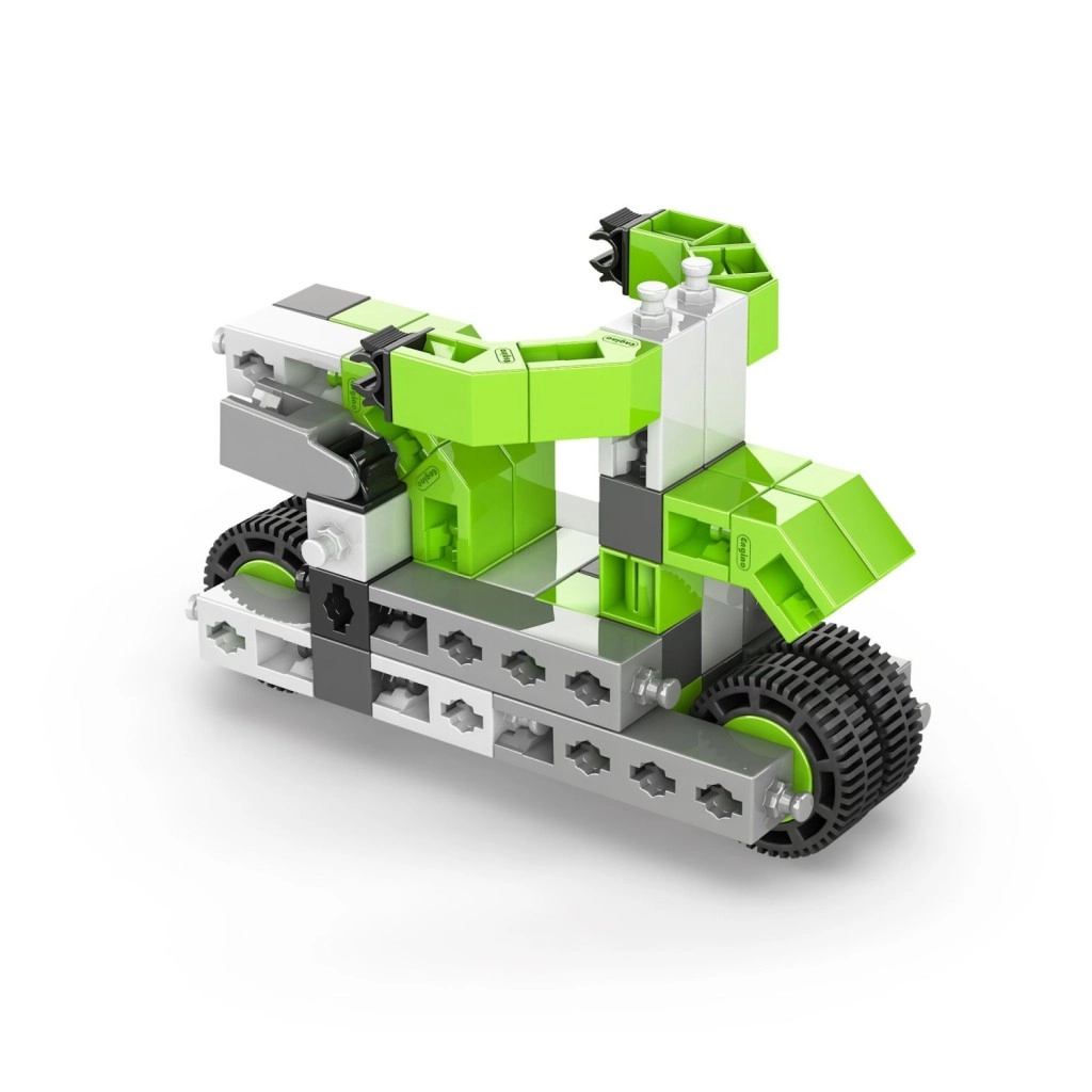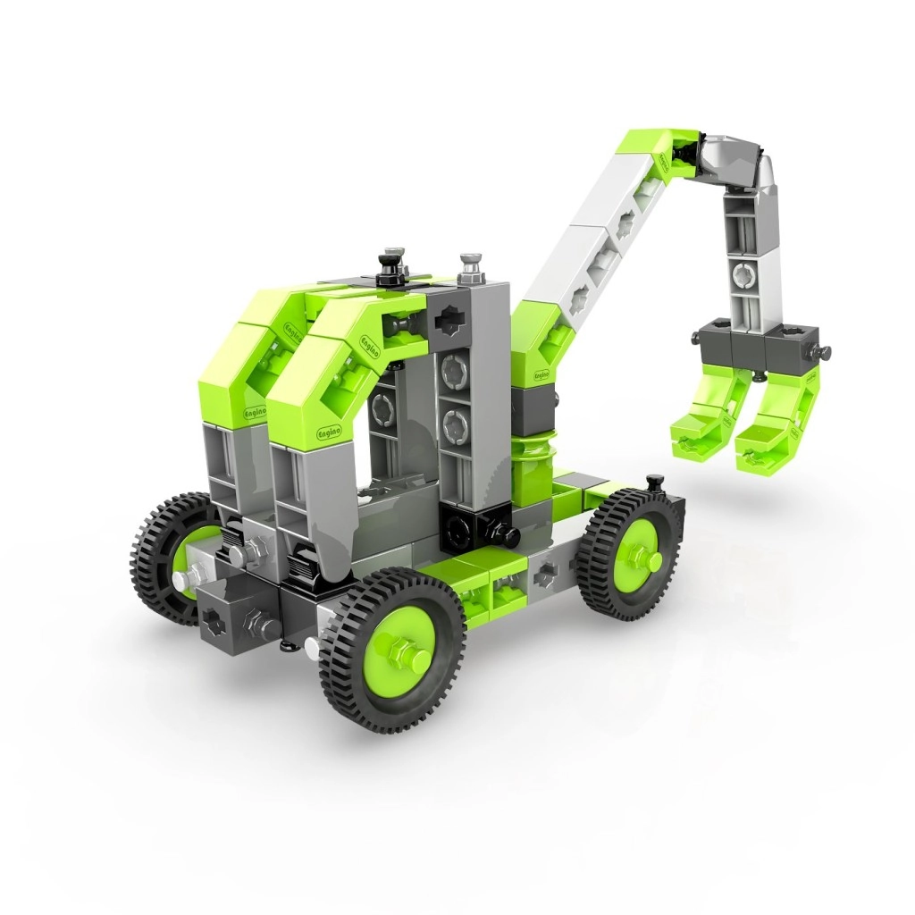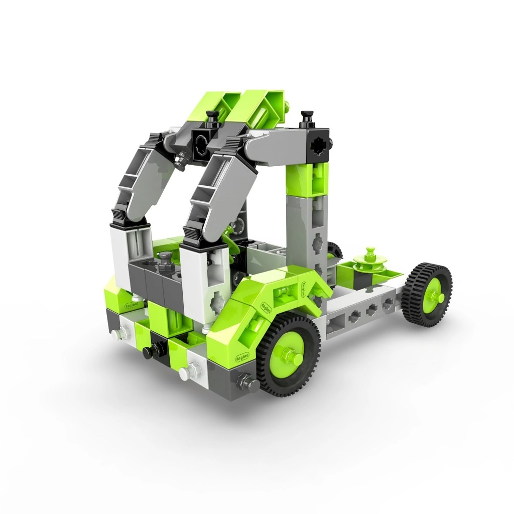 Creează o colecție de utilaje pe roți, brațe de ridicare și alte vehicule care susțin imaginația și abilitățile STEM. Setul este produs în UE (Cipru) și este pe deplin compatibil cu alte seturi Engino, astfel încât posibilitățile de extindere sunt practic nelimitate.