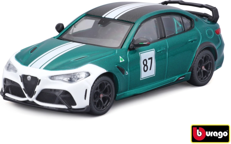 Alfa Romeo GTAm, cunoscut pentru succesele sale pe circuite. Este amplasat într-o cutie decorativă elegantă, ideală nu doar pentru colecționari, ci și ca un cadou plin de stil.