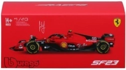 Model de colecție la scara 1:43 redă fidel monopostul FERRARI SF-23 (2023) al echipei Scuderia Ferrari, cu numărul de concurs 55 al pilotului Carlos Sainz. Realizarea precisă din metal, cu detalii fine și figurina pilotului, îi va încânta pe fanii F1 și pe colecționari.