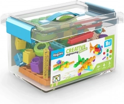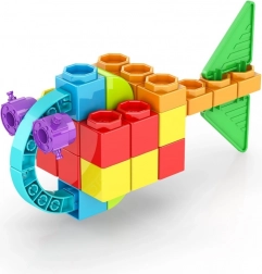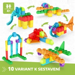 Construiți animale, mașini și vehicule din piese mari, colorate și ușor de îmbinat. Variabilitatea susține imaginația și motricitatea fină.