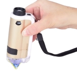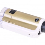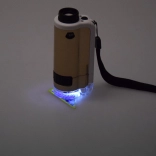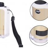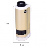 Dispozitivul este ușor de folosit: așază baza transparentă pe suprafața obiectului examinat, reglează claritatea cu rotița și, după nevoie, alege mărirea 100x sau 250x. Construcția durabilă din metal și plastic, alimentare 1× AAA 1,5 V și accesoriile incluse îl fac un cadou educativ excelent.