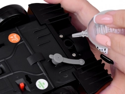 După adăugarea apei, vehiculul evacuează fum pe eșapament, oferind un aspect autentic de mașină de curse.