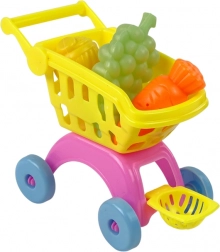 Include un coș de cumpărături cu coș galben și fructe de plastic, excelent pentru jocurile de cumpărături.