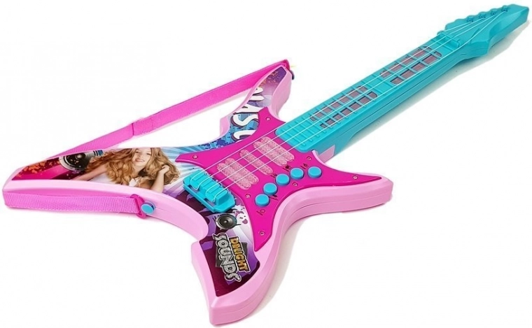 Această chitară electrică pentru copii de culoare roz este o alegere excelentă pentru primele experiențe muzicale. Efectele luminoase care clipesc și efectele sonore distractive îi motivează pe cei mici să cânte, dezvoltând ritmul, coordonarea și încrederea în sine la reprezentații. Datorită celor 4 corzi se poate ciupi cu degetele sau cu unghia; pana nu este inclusă.