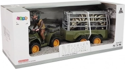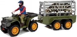 - ATV, remorcă/cutie de transport detașabilă cu spate rabatabil, figurină șofer, figurină zebră