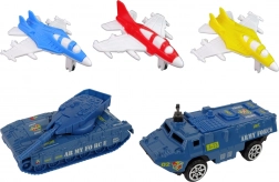 Trei avioane de vânătoare colorate, un tanc pe șenile și un vehicul blindat cu caroserie metalică aduc acțiunea atât pe mare, cât și pe uscat.