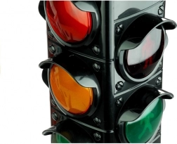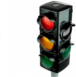Lumini funcționale roșu, portocaliu și verde pentru joacă autentică și o mai bună înțelegere a regulilor de circulație.
