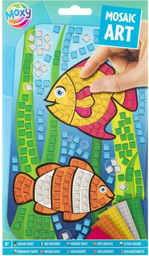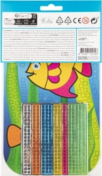 Set distractiv și creativ pentru copii, care permite realizarea unei mozaicuri metalice superbe cu motivul peștișorilor. Este suficient să folosiți pătrățele autocolante din spumă colorată și să le aplicați pe șablon conform culorilor indicate, pentru a obține o imagine atractivă.