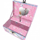 Descoperiți încântătoarea cutie muzicală pentru bijuterii, care transformă fiecare deschidere într-un mic ritual al bucuriei. La ridicarea capacului, răsună o melodie clasică, iar în interior începe să se rotească simpatica figurină de unicorn. Datorită oglinzii integrate, copiii se pot bucura de reflexie și pot avea comorile mereu la îndemână.