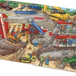 Această carte ilustrată de mari dimensiuni îi poartă pe micii cititori în lumea animată a șantierului, unde lucrează diferite utilaje de construcții – de la excavatorul roșu cu roți duble la încărcătorul verde pe roți și până la excavatorul galben pe șenile. Scenele colorate și clare stimulează curiozitatea și dezvoltarea motricității fine și a gândirii logice.