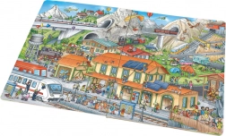 Descoperă lumea fascinantă a căilor ferate cu această carte ilustrată de mari dimensiuni pentru copii. Oferă ilustrații detaliate ale locomotivelor, vagoanelor, șinelor și gărilor, povești amuzante pe fiecare pagină și o mulțime de idei pentru povestit. Copiii află cine lucrează pe calea ferată, se plimbă cu trenul istoric și cu trenul rapid modern și trăiesc o călătorie prin tuneluri, peste poduri, ziua și noaptea.