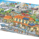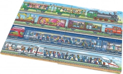 Această mare carte ilustrată îi va încânta pe toți micii iubitori de trenuri. Pe ilustrațiile bogate, atent realizate, copiii aruncă o privire de aproape în lumea căilor ferate – de la locomotive și vagoane, la gări aglomerate și stații liniștite de la țară. Fiecare pagină este plină de detalii mărunte și personaje pe care copiii le pot căuta și împreună cu care pot trăi povești.