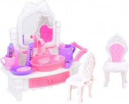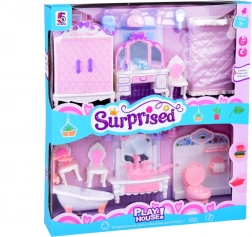Acest set de mobilier bogat echipat pentru căsuța de păpuși oferă tot ce este necesar pentru un dormitor stilat și o baie funcțională. Pat elegant cu ramă decorativă, măsuță de toaletă cu oglindă, dulap și accesorii pentru baie precum cadă, toaletă și lavoar îi inspiră pe copii la ore întregi de joc imaginar.