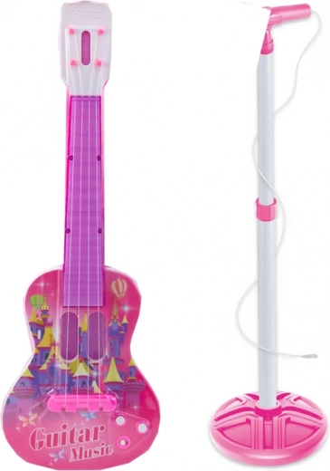 Această chitară roz pe baterii, realizată realist, va lumina orice reprezentație pentru copii. La pornire se aprinde și oferă diferite melodii și moduri pentru o distracție muzicală variată. Copiii pot cânta la chitară, pot cânta la microfon sau pot combina ambele funcții simultan.