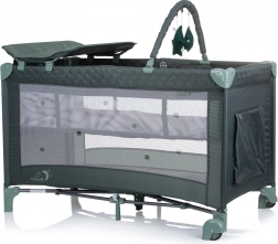 - Pătuț pliabil, al doilea nivel cu saltea moale, salteluță pentru înfășat, compartiment/organizator, arc suspendat cu jucării, geantă de transport