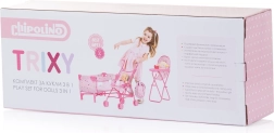 Descoperiți echiparea completă pentru păpuși în delicatul motiv UNICORN. Setul CHIPOLINO TRIXY UNICORN include cărucior pentru păpuși, pătuț și scaun de masă, pentru ca cei mici să-și dezvolte pe deplin grija, empatia și coordonarea fizică. Datorită construcției ușoare, jucăriile se manevrează ușor acasă și în călătorii.