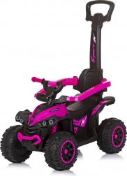 Mașinuța roz fără pedale tip quad de la CHIPOLINO îmbină siguranța, confortul și distracția pentru cei mici. Datorită barei de ghidare cu mâner confortabil și copertinei detașabile, copiii pot merge cu ajutorul părinților sau complet singuri. Dezvoltarea motricității și coordonării este susținută de roțile stabile și de melodiile care fac plimbarea și mai plăcută.