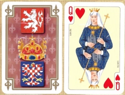 Cărți de joc elegante de tip francez, ideale pentru canastă, joker și solitar. Set de lux cu motive stilizate ale Regatului Ceh, oferind calitate superioară și joc confortabil pentru orice ocazie. În pachet găsiți 2× 55 de cărți într-o cutie practică din carton.