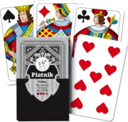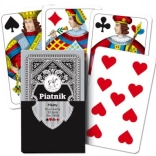 Cărți clasice tip pikety, cu două capete, având valori franceze 7, 8, 9, 10, J, Q, K, A. Ideale pentru jocuri populare precum Mariáš sau Prší. Pachetul conține 32 de cărți de joc cu un design clar și un format comod, potrivite atât pentru acasă, cât și în călătorii.