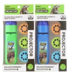 Descoperă farmecul distracției cu un proiector din plastic pe baterii, care aduce în camera copilului tău imagini fascinante cu dinozauri. Acest proiector este echipat cu 3 discuri cu imagini, în total 24 de dinozauri diferiți, pe care îi poți proiecta cu ușurință pe perete sau pe o altă suprafață albă printr-o simplă apăsare de buton.