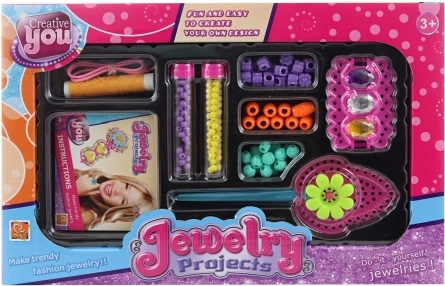 Trezește-ți creativitatea cu acest set uimitor pentru realizarea bijuteriilor. Setul include o selecție bogată de mărgele și diverse piese, care îți permit să creezi articole unice, precum inele sau clame de păr.