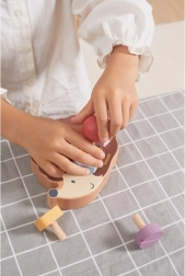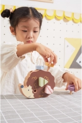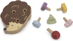 Ariciul din lemn permite copiilor să-și exerseze motricitatea fină folosind șuruburi în diverse culori și forme.