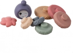 Jucăria este realizată din PVC moale, netoxic, cu margini rotunjite – ideală pentru primele jocuri senzoriale și ca accesoriu delicat pentru dentiție. Piesele se spală ușor cu apă caldă sau se șterg cu o cârpă umedă, rămânând igienice chiar și la utilizare zilnică.