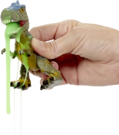 Deschide fălcile, scoate piesele ascunse, asamblează-ți dinozaurul și hrănește-l cu mâzgă. Vei afla dacă „vărsă”, „face caca” sau eliberează mâzgă.