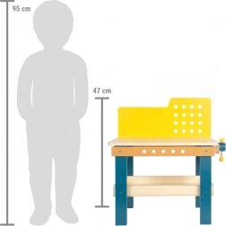 Descoperiți spațiul de lucru perfect pentru micii meșteri. Acest banc stabil din lemn SMALL FOOT Workshop oferă elemente realiste precum menghină integrată, blat de lucru cu orificii și o placă pegboard galbenă pentru fixarea pieselor. Copiii pot bate cuie, tăia și înșuruba, dezvoltând îndemânarea manuală și gândirea tehnică.