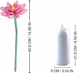 Acest set creativ îți permite să construiești un lotus roz elegant cu tulpină verde lungă și o vază albă minimalistă. Datorită plasticului ABS de calitate, sigur pentru sănătate, modelul se remarcă prin rezistență și durată lungă de viață. Floarea finală se potrivește perfect pe birou, pe raft sau în camera de zi.
