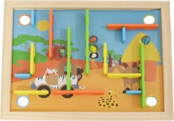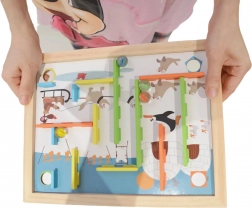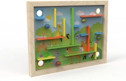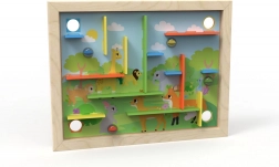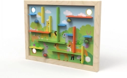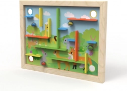 Acest labirint proiectat pentru joc este un instrument distractiv și de dezvoltare pentru copii. Include 22 de piese, care pot fi plasate în diferite orificii de pe tablă, fie conform instrucțiunilor colorate, fie după propriile idei.