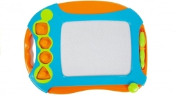 Descoperiți farmecul desenului fără sfârșit. Tablă magnetică de desen cu ștampile îmbină jocul creativ și antrenamentul fin al motricității – copiii își exersează prinderea stiloului, recunoașterea formelor și a culorilor. Ecranul multicolor și stiloul magnetic le permit copiilor să creeze desene originale, care pot fi șterse ușor și reluate oricând.
