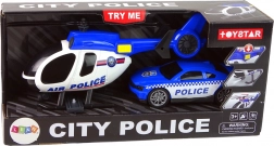 Intrați în rolul poliției și porniți în acțiune! Elicopterul mare, cu elice care pot fi învârtite manual (anvergură până la 20 cm), are un buton pentru efecte luminoase și sonore de pornire și zbor, făcând jocul și mai realist. Mașina de poliție, cu inscripții caracteristice, geamuri fumurii și anvelope din cauciuc, gonește cu viteză pe suprafețe drepte. Întregul set este realizat din plastic ușor și rezistent și este sigur pentru copii.
