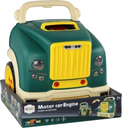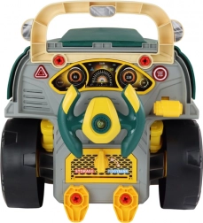 Acest atelier de montaj pentru copii, sub forma unui camion verde, îmbină joaca și învățarea într‑un singur produs. Cei mici pot desfileta roțile, deschide capota și explora motorul, exersând coordonarea mână‑ochi și răbdarea. Tabloul de bord interactiv, cu volan, claxon, buton start/stop, buton de avarie și comutator al „treptelor”, oferă experiențe realiste de condus.