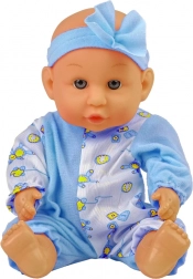 Această păpușă lucrată în detaliu, în pijamale albastre și cu bentiță adorabilă, imită un bebeluș real. Copiii o pot hrăni cu biberonul inclus și apoi o pot așeza pe oliță – păpușa beă și face pipi, ceea ce susține jocul realist și exersarea obiceiurilor corecte.
