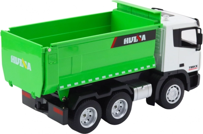 Camion verde controlat de la distanță, la scară 1:18 oferă distracție realistă pe șantier pentru fiecare mic constructor. Acest model permite transportul materialelor vrac și al necesarelor de construcții cu ajutorul telecomenzii.