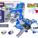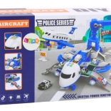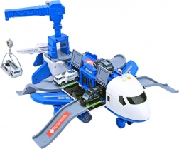După deschidere, avionul se transformă într-o stație mobilă de poliție cu rampe, spații de depozitare și o platformă pentru „lansarea” mașinuțelor pentru intervenții rapide. Pachetul include 3 vehicule de poliție, o macara rotativă 360° cu rotiță de control și un set de indicatoare, conuri și alte accesorii pentru construirea propriului oraș și a drumurilor.