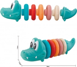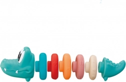 Această piramidă adorabilă, cu cap de crocodil, aduce copiilor atât distracție, cât și învățare într-un singur produs. Inelele colorate de diferite dimensiuni, cu numere în relief, îi motivează la sortare, înșirare și numărare, dezvoltând în mod natural îndemânarea și gândirea logică. Execuția moale este plăcută la atingere și blândă cu mânuțele copiilor.