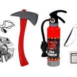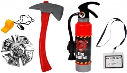 Setul include multe componente realiste care facilitează copiilor să pătrundă în lumea pompierilor. Jacheta cu benzi reflectorizante oferă un aspect autentic, în timp ce casca cu insignă adaugă realism jocului. Extinctorul funcționează ca un pulverizator cu apă pentru ca cei mici să se bucure pe deplin de jocul de stingere a incendiilor. Toate piesele sunt depozitate într-un rucsac transparent, care facilitează portabilitatea.