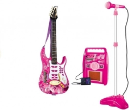 Această chitară electrică este concepută pentru copiii care iubesc muzica și vor să devină vedete rock. Datorită compoziției sale și componentelor incluse precum microfon, amplificator și trepied reglabil, este complet pregătită pentru spectacole muzicale.