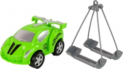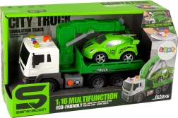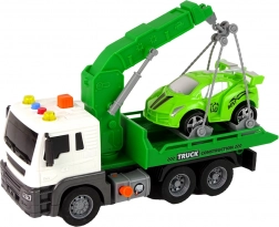 Pe lângă mașina de tractare, setul include o mașină sport pregătită pentru reparații în atelierul dvs. de jucării. Dimensiunile mașinii de tractare sunt de 38 cm x 13 cm x 16 cm, iar mașina sport măsoară 18 cm x 8 cm x 7 cm. Jucăria este alimentată de trei baterii AG13 (incluse în pachet) și este destinată copiilor peste 3 ani. Îndeplinește standardele CE și EN 71.