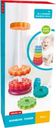 Turnul Rotativ Pirana Puzzle Curcubeu este o jucărie interactivă care susține dezvoltarea gândirii logice, percepției vizuale și recunoașterii culorilor și formelor. Copiii învață să asambleze turnul de la cele mai mari la cele mai mici piese în funcție de culorile curcubeului, ceea ce este extrem de captivant și educativ.