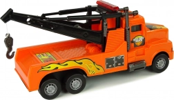 Pornește acțiunea de salvare cu mașina de tractare din plastic, portocalie, cu flăcări stilizate. Macara rotativă, cablu extensibil și troliu manual permit să „tractezi” cu ușurință alte jucării către un loc sigur. Mecanismul cu întoarcere adaugă viteză și un plus de distracție.