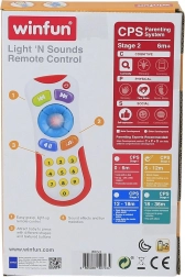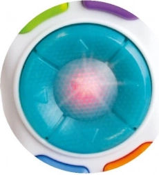 Telecomanda este dotată cu butoane colorate care stimulează dezvoltarea senzorială a copiilor prin stimuli sonori și vizuali.