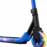 Iluminarea LED de pe platformă și roți nu doar crește vizibilitatea, ci oferă și un aspect atrăgător în mers. Înălțimea reglabilă a ghidonului permite adaptarea la statura copilului. Combinația dintre anvelopa față îngustă de 5" și cea spate mai lată de 3,5" din cauciuc ajută la menținerea stabilității și confortului pe trotuarele orașului.