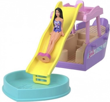 Descoperă magia lumii MINI BARBIE LAND cu adorabila mini barcă ce se transformă în câteva clipe într-un parc acvatic distractiv. Setul include o barcă cu tobogan detașabil și o piscină turcoaz în formă de inimă, plus o mini păpușă. Ideal pentru călătorii, colecționare și joacă creativă. Dimensiuni compacte, detalii bine gândite și un tobogan funcțional care asigură multă distracție imaginativă.