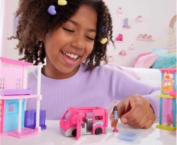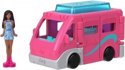 Rulota Mini Barbie Land oferă uși care se deschid, o bucătărie detaliată și un interior bine conceput pentru scenarii ingenioase în călătorii.